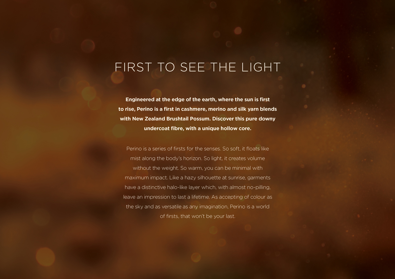 Perino is a unique yarn of possum and merino created only in New Zealand. They needed a story and brand idea that would stand out at the Italian Pitti Filati show, and extend through into new names for their yarns.